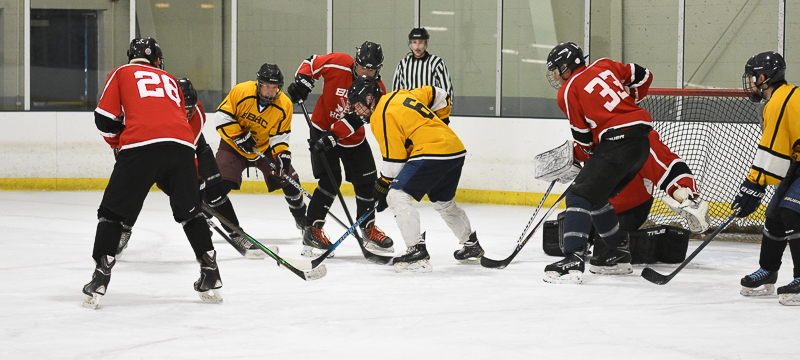 With home ice for the playoffs on the line, the red team ran out to a 3-0 lead. Trevor Armand opened the scoring by going ass to bar up, when he banked a shot off the ass of goalie Fuji, who was pressing the button as fast as he could, but still couldn't get up. Steve Thompson then scored two and it was 3-0 just like that. Ted Miller was so pissed, he shot the puck at the ref. But without Jon Morin, the red team had no defense. First period goals by Mike Cormican and Chris Kirby made it 3-2, then the collapse was complete in the 2nd when they both scored again. "I didn't even need to get my shots on the net and they went in," said Cormican. Down 4-3 headed to the third, it was time for the yellow team to choke away the lead. Two goals by a hungry and angry Pat Deskin put red up 5-4. Trevor Armand's 2nd of the game made it 5-3. A real late goal by Cormican cut it to 6-5, as red was poised to choke it away again. Thanks to Steve Kaneb who was smashing the glass with his stick to make sure the clock got stopped after that goal. The game ended with 25 seconds left with a Thompson empty net goal. These two teams will meet in round one of the playoffs in a few weeks, and it should be a good series. Check out our great new box score here. |