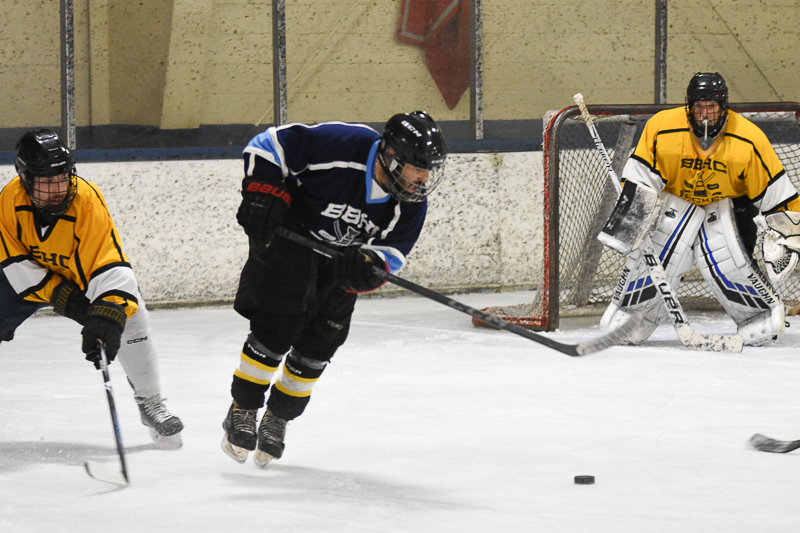 Goalie Steve Lombardi played really well despite the loss. "Without him, this 6-3 loss could have easily been 7-3," said exhausted defenseman Don Fortini. Let's face it, you can't win in this league when 8 players show up against a full squad. Even though Mark Melito was able to play 53 of the 57 minutes, he only had one goal. "Nobody would pass me the puck," said Melito in his defense. It was 1-1 after one as the navy team kept it close but got tired. In the 2nd, after Kevin Flanagan scored to make it 2-1 yellow, JA Ambrosino would tie it at 2-2 getting Joe Surette his first assist of the season here in week 10. "It was a long time coming, but I'm off the schnide and trying to catch Jimmy D.," said Surette. Speaking of Jimmy D., in a twist of fate, he found himself waiting at the blue line waiting for Derek Osbahr to clear the zone. "Being on the other enf of that, I guess it does kinda suck," said Jimmy D. Two goals by Chris Kirby had yellow up 4-2 before a beautiful end to end rush by Derek Osbahr, in which he narrowly avoided passing to anyone in blue, ended in a goal and a 4-3 score headed to the final 19. In that final period navy was just flat out of gas. "And gas is not free here like it's going to be in New York City," noted John Ambrosino. A third period goal by Kirby completed his hat trick. Then a beauty of a steal and roof shot by Zack Armand concluded the scoring in the 6-3 final. The loss clinched last place for the navy team, setting them up for a date with the first place green team in the playoffs with still two games left in the season. Yellow jumps over red into 2nd place, setting up a playoff showdown with the red team. Check out our great new box score here. |