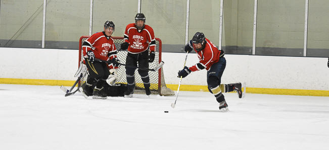 "No matter where I play, it's gonna hurt the team somehow," said Long as he climbed into his goalie gear. "If we can get him 10 or 11 goals we'll atleast get a tie," said Pat Deskin who wen out and scored 4 times. Blue actuall took a 3-1 lead into the 2nd period. "Yeah, we didn't believe it would last either," said Steve Hardy. "Derek Osbahr had 2 nice goals, but the rest of us were standing around watching him." The lead only lasted a few minutes into the 2nd period, that's where the last place team fell apart. They gave up six goals in the 2nd, en route to an 11-6 loss. "I think we're happy scoring six," said Eric Grasso. "We fell that's a win on it's own." This is now 4 losses in a row for the navy team, as they look to lock up the 4th seed early this season. Red has put together two wins in a row, but still trail the green team by 3 points. "We don't want to finish in first and then have to play this blue team," said Brian Armand. "That would be such a boring series." Check out our great new box score here. |